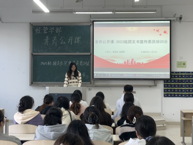 11月13日中午,经管学部于启东校区JX3-4-102教室开展团干部技能培训会。此次会议由经管学部城管232班赵雅祺、会计232班董添益主持。