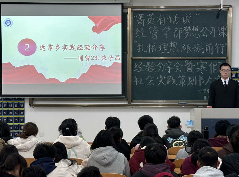 为进一步提升同学们对寒假社会实践活动的认知水平,激发他们对寒暑假实践活动科学性和先进性的深入思考,经管学部于11月19日在JX1-2-213举办了“扎根理想 砥砺前行”经验分享会暨寒假社会实践策划书大赛启动仪式。科技实践部副部长刘淼主持,经管学部2024级全体同学出席。