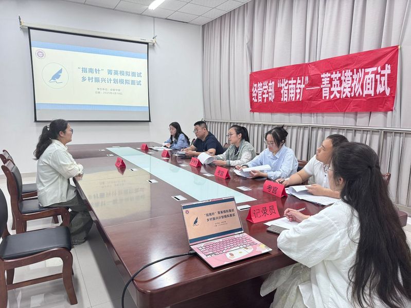 为深化学生对乡村振兴战略的认知,提升基层服务岗位应聘能力。经管学部于4月18日在大活A317开展了乡村振兴计划模拟面试。经管学部办公室(学工岗)副主任吴飞、办公室(团委岗)副主任戎隽仪、辅导员张亚鑫、王笛、张志伟担任面试官。吴琼璘担任记录员。