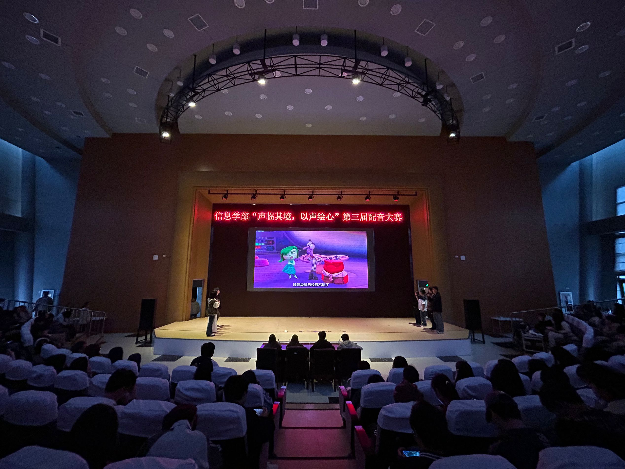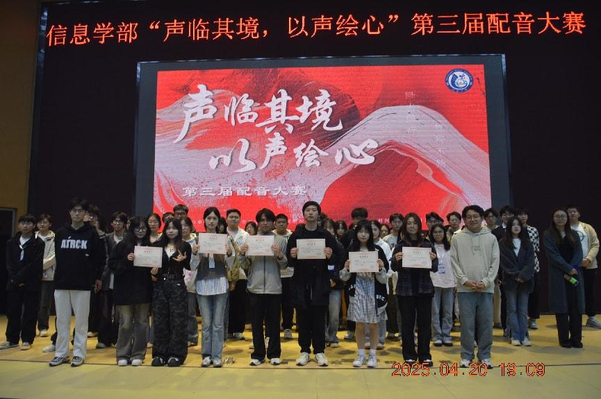 为丰富校园文化生活,锻炼学生语言表达能力,激发艺术创造力,4月20日晚,信息学部于大活报告厅举办“声临其境,以声绘心”第三届配音大赛,信息学部辅导员申辉老师,学部学生会主席团担任评委,软工242班苗天硕主持活动。
