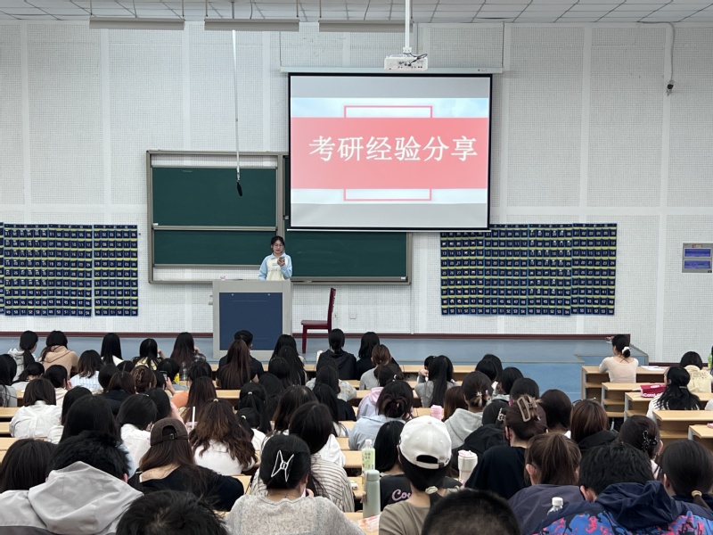 会上,朱慧同学结合自身考研经历,从政治、英语、数学及专业课四个科目出发,详细讲述了系统的备考策略,分享了各科的学习方法与时间管理技巧,尤其针对考研过程中普遍存在的焦虑情绪,提出了调整心态的有效建议,鼓励同学们坚定信心,保持积极备考状态。胡欣悦同学围绕考研择校、专业选择等方面展开经验交流。她提出,考研院校与专业的选择需紧密结合个人兴趣和自身实力,建议同学们理性分析往年数据等报考信息,谨慎做出选择。同时,她分享了制定备考计划的方法,建议同学们合理分配时间,确保备考过程张弛有度。最后,由辅导员老师进行总结并且提出殷切期望,希望大家在备考过程中要坚持持之以恒的精神,注重知识积累与能力提升,以积极的心态迎接挑战。