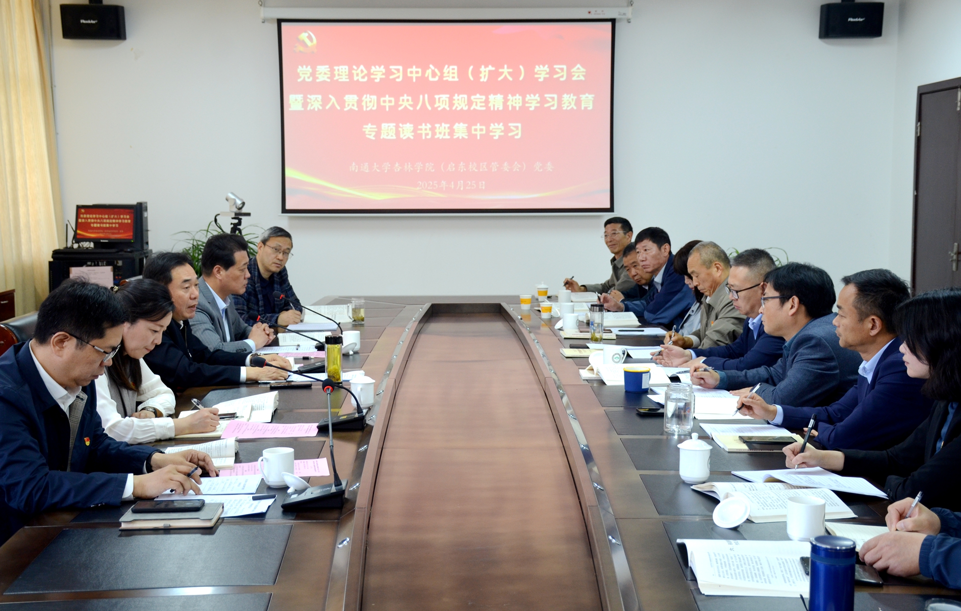 4月25日上午,金沙6165总站线路检测党委举行理论学习中心组(扩大)学习会暨深入贯彻中央八项规定精神学习教育专题读书班集中学习,学习研讨《习近平关于加强党的作风建设论述摘编》第四、五专题。校党委常委、副校长、学院理事会理事长吉明明到场巡学旁听,校纪委(监察专员办)办公室副主任沈金峰、校宣传部副部长刘艳现场督导,金沙6165总站线路检测党委书记、启东校区管委会常务副主任朱晓阳主持学习会。