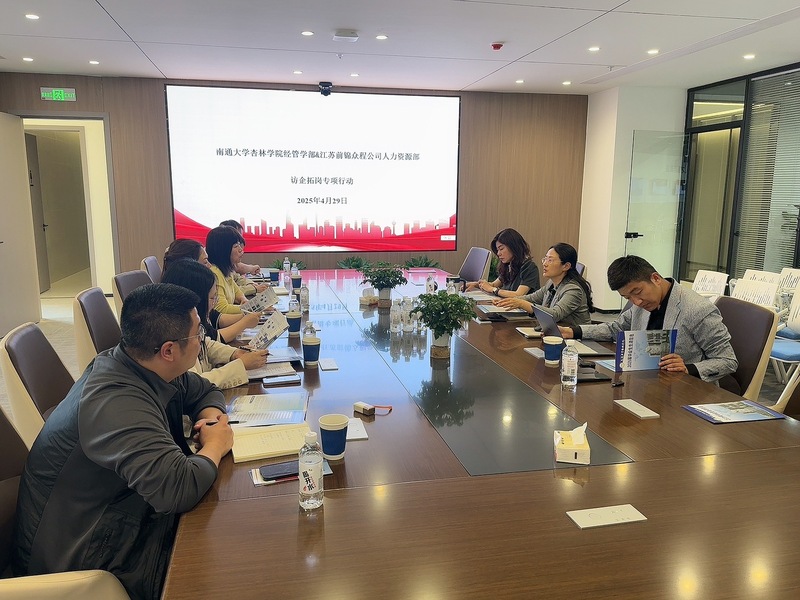 为深化校企合作、促进学生高质量充分就业,4月29日,经管学部党总支书记、学部主任钱亮华率队前往江苏前锦众程公司人力资源部开展“访企拓岗促就业”专项行动。江苏省如东经济开发区人大工委主任张小芳、江苏省如东经济开发区政法和社会事务管理局副局长陆亚萍莅临现场指导。