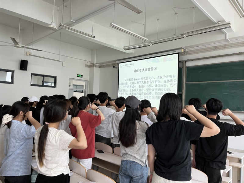 最后,杨俊喆安排班委当众朗读考试诚信承诺书,组织学生集体宣誓并签名承诺遵守考场规则,倡导学术诚信,共同营造一个公平、公正、诚信、和谐的学习环境。