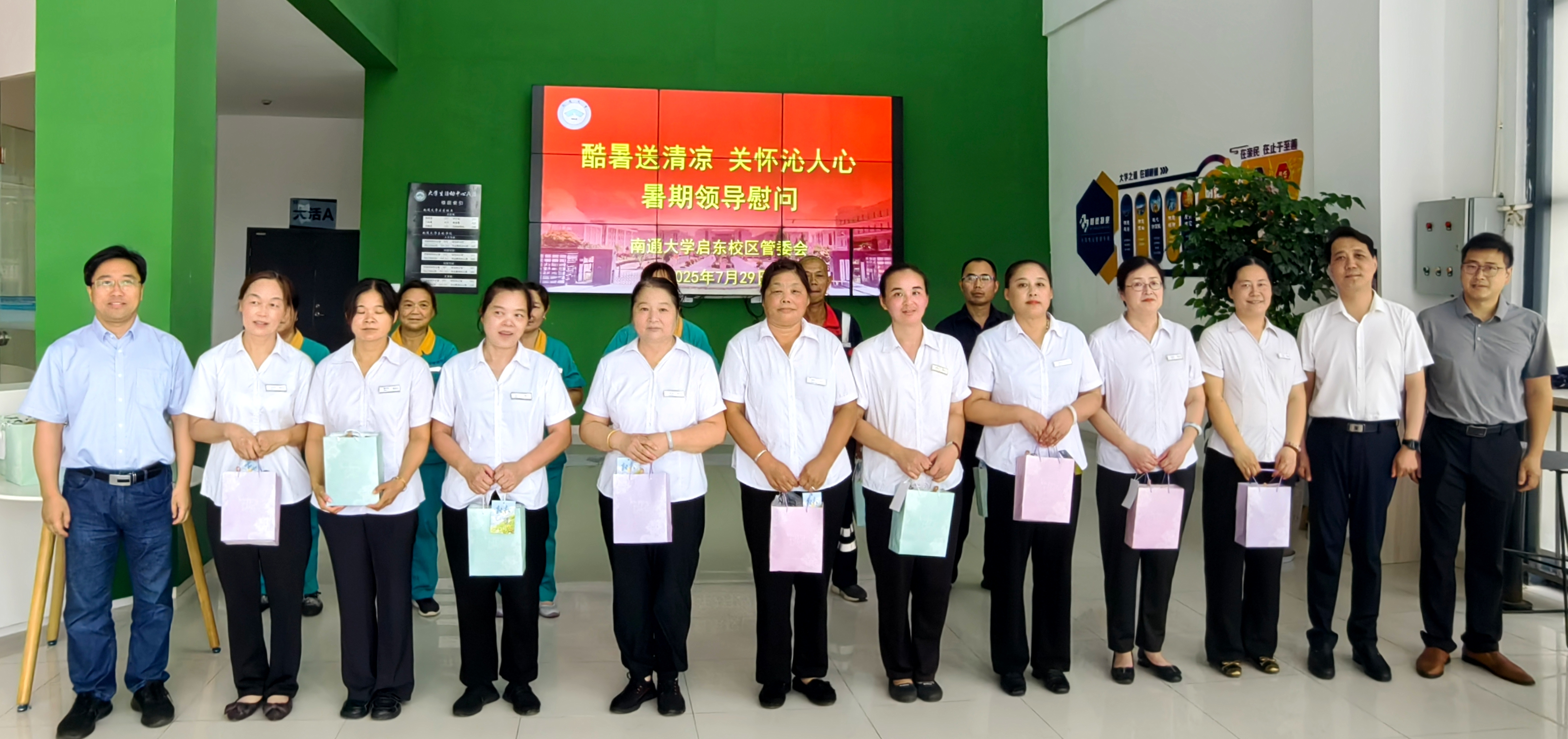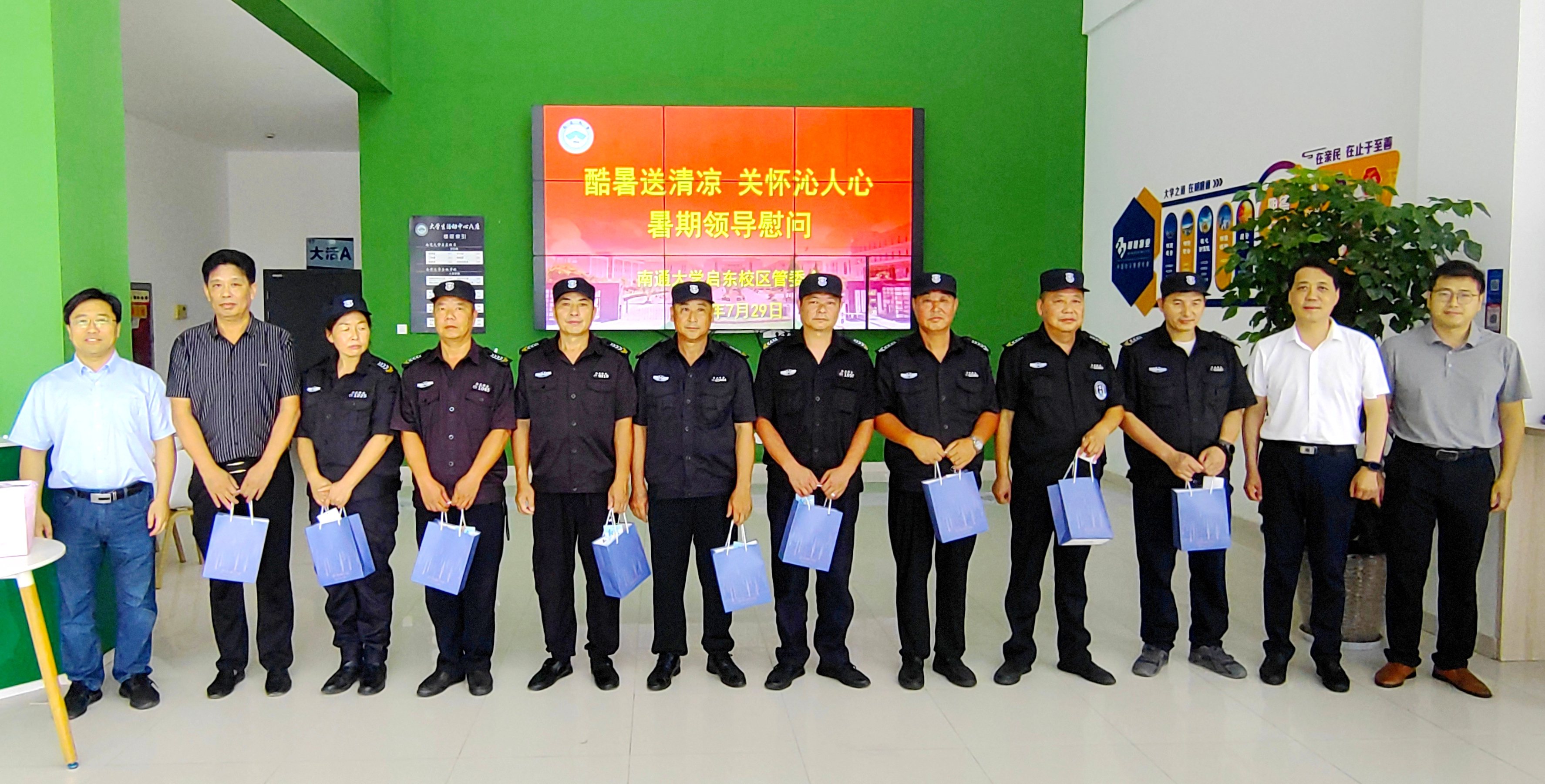 7月29日下午,酷暑当头,金沙6165总站线路检测党委书记、启东校区管委会常务副主任朱晓阳,金沙6165总站线路检测党委副书记、院长茅靖峰率队,深入项目一线慰问后勤员工与安保人员。