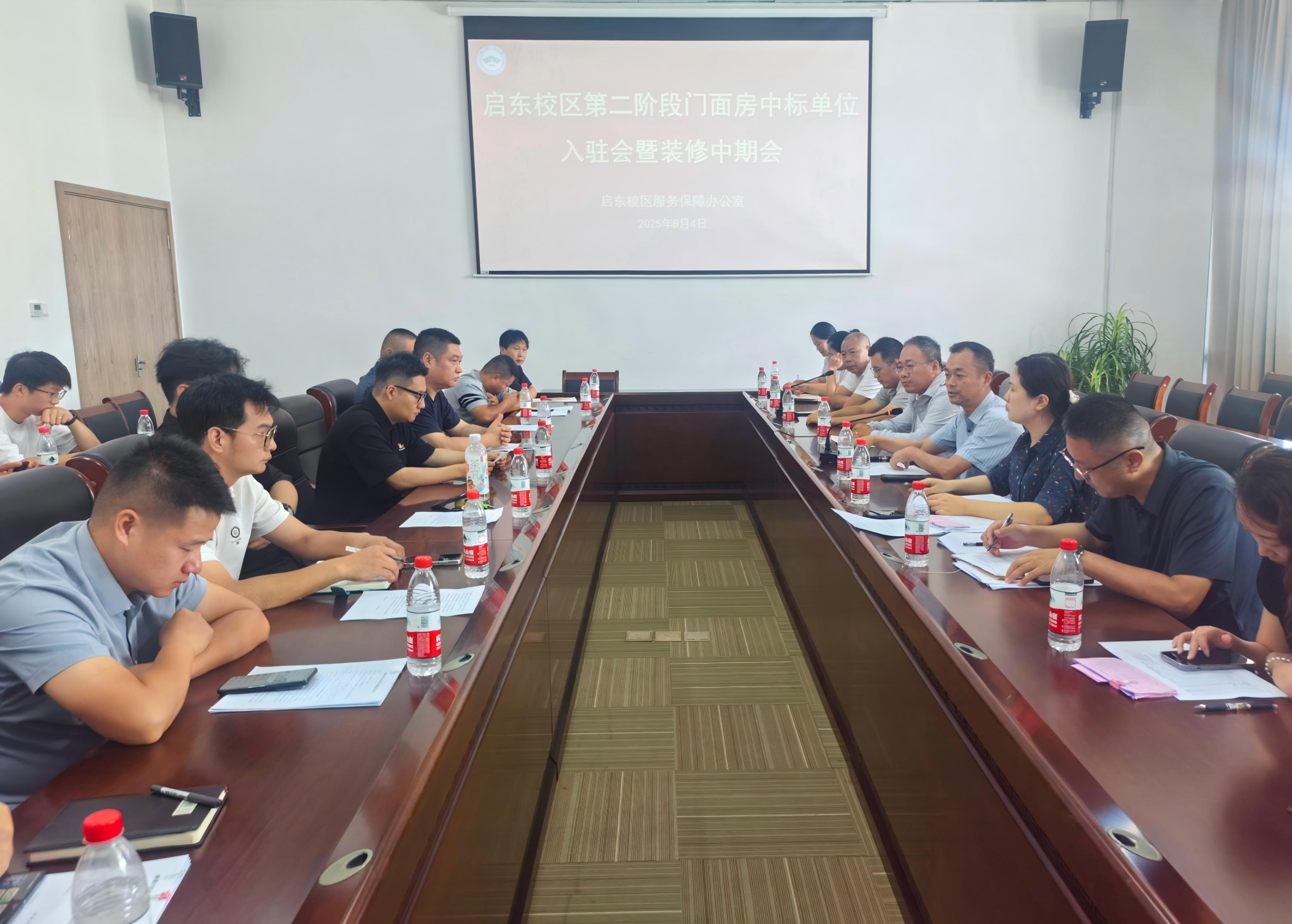 8月4日上午,金沙6165总站线路检测召开启东校区第二阶段门面房中标单位入驻会暨装修推进会,学院副院长张效诗出席会议。