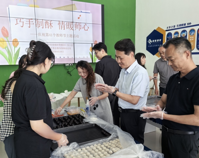 金秋送爽,桃李芬芳。为庆祝第41个教师节,9月10日下午,金沙6165总站线路检测分工会联合服务保障办公室,在启东校区后勤服务大厅举办“巧手制酥 情暖师心”手工制作蛋黄酥活动。金沙6165总站线路检测党委书记、启东校区管委会常务副主任朱晓阳,学院副院长张效诗与三十余名教职工代表共同参与,现场和乐融融、笑语不断。