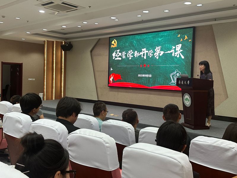 2025年9月5日,经管学部开学第一课在图书馆报告厅102隆重举行。经管学部党总支书记、主任钱亮华、经管学部学部副主任范赟、经管学部党总支副书记牟蕾、经管学部教师党支部书记鞠斐以及经管学部全体辅导员、经管学部学生党员以及入党积极分子参加。
