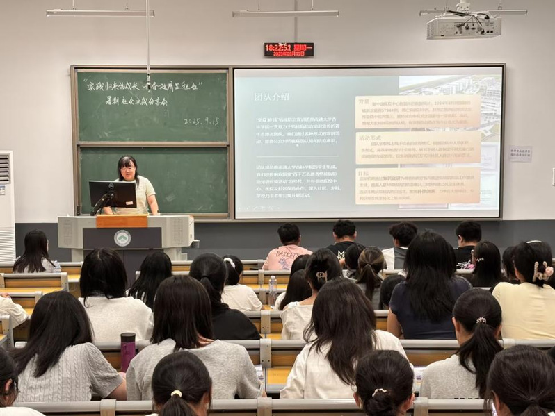 秋意渐浓,萌新启航。9月15日晚,伴随着初秋的微凉夜色,医学部启秀校区2102召开“实践归来话成长·青春挺膺显担当”暑假社会实践分享会。活动旨在帮助同学们了解社会实践开展流程,激发同学们参与社会实践活动的热情,同时也为刚踏入大学校门的新生们搭建一座通往实践成长的桥梁。本次活动邀请“江海青年救援队”“受益“肺”浅结核防治宣讲团”“岐黄传承队”“益眼万年队”等团队分享社会实践经验,医学部百余位学生参与。