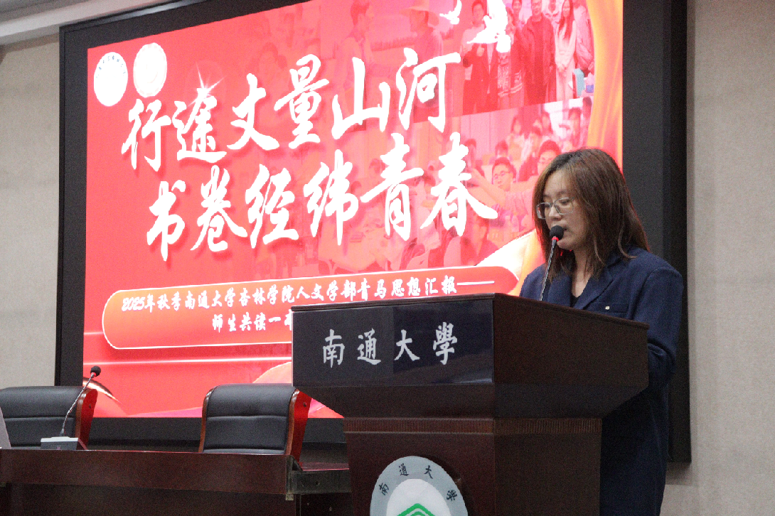 活动伊始,金晨副书记以“行途丈量山河,书卷经纬青春”为分享主题,围绕《红星照耀中国》的核心内容与精神内涵展开深度解读。她指出,这一主题与书中承载的革命精神形成跨越时空的精神共鸣,“行途丈量山河”既是革命先辈以双脚踏勘祖国大地、以坚定信仰照亮救国征程的历史写照,更是新时代青年必须传承的精神内核。她寄语同学们,要在红色经典研读中感悟历史脉络,在实践历练中践行初心使命,让青春理想与祖国发展同频共振,将个人成长融入民族复兴的时代洪流。