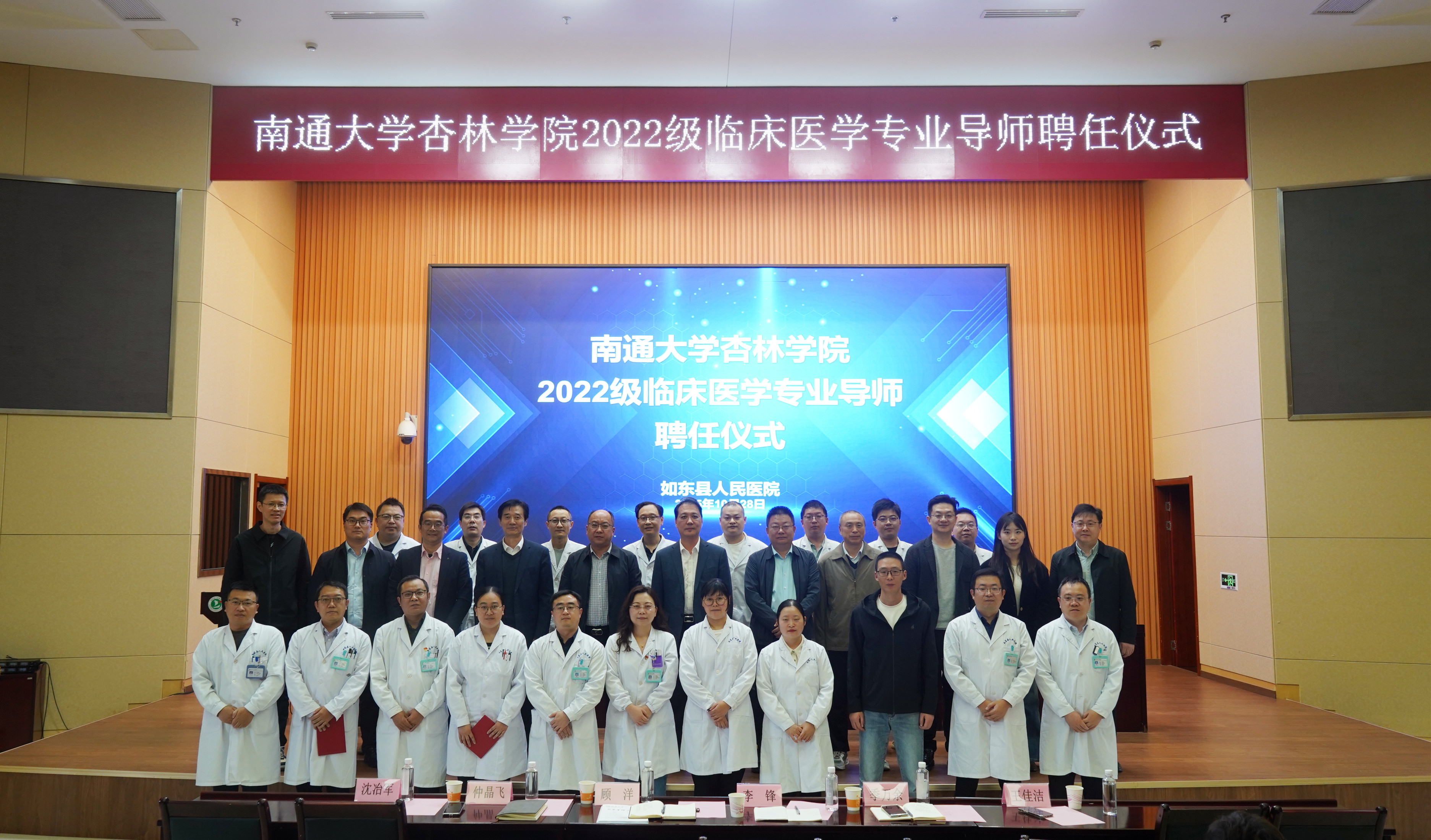 10月28日、29日,我院分别在如东县人民医院、启东市人民医院举行2022级临床医学专业导师聘任仪式。金沙6165总站线路检测党委书记、启东校区管委会常务副主任朱晓阳,副院长潘志勇,如东县人民医院党委书记张建新、院长王锦林,启东市人民医院党委副书记周健,副院长蔡春岳出席仪式。