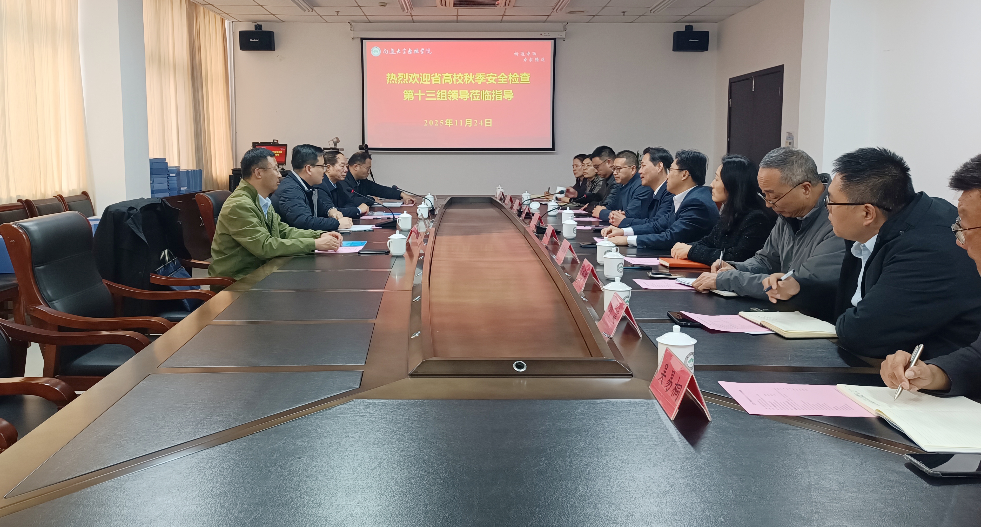 朱晓阳代表学院对检查组的到来表示热烈欢迎。他强调,安全工作是校园和谐稳定的基石,学院党政始终坚持以安全发展理念为引领,从严从实抓好各项校园安全工作。前期,学院已严格对照省秋季安全检查要求,全面开展自查自纠,逐项分解任务清单,系统排查各类风险隐患。他表示,学院真诚希望以此次检查为契机,借助专家智慧为学院安全管理“精准把脉、对症开方”,进一步夯实校园安全基础,推动安全工作持续向好发展。
